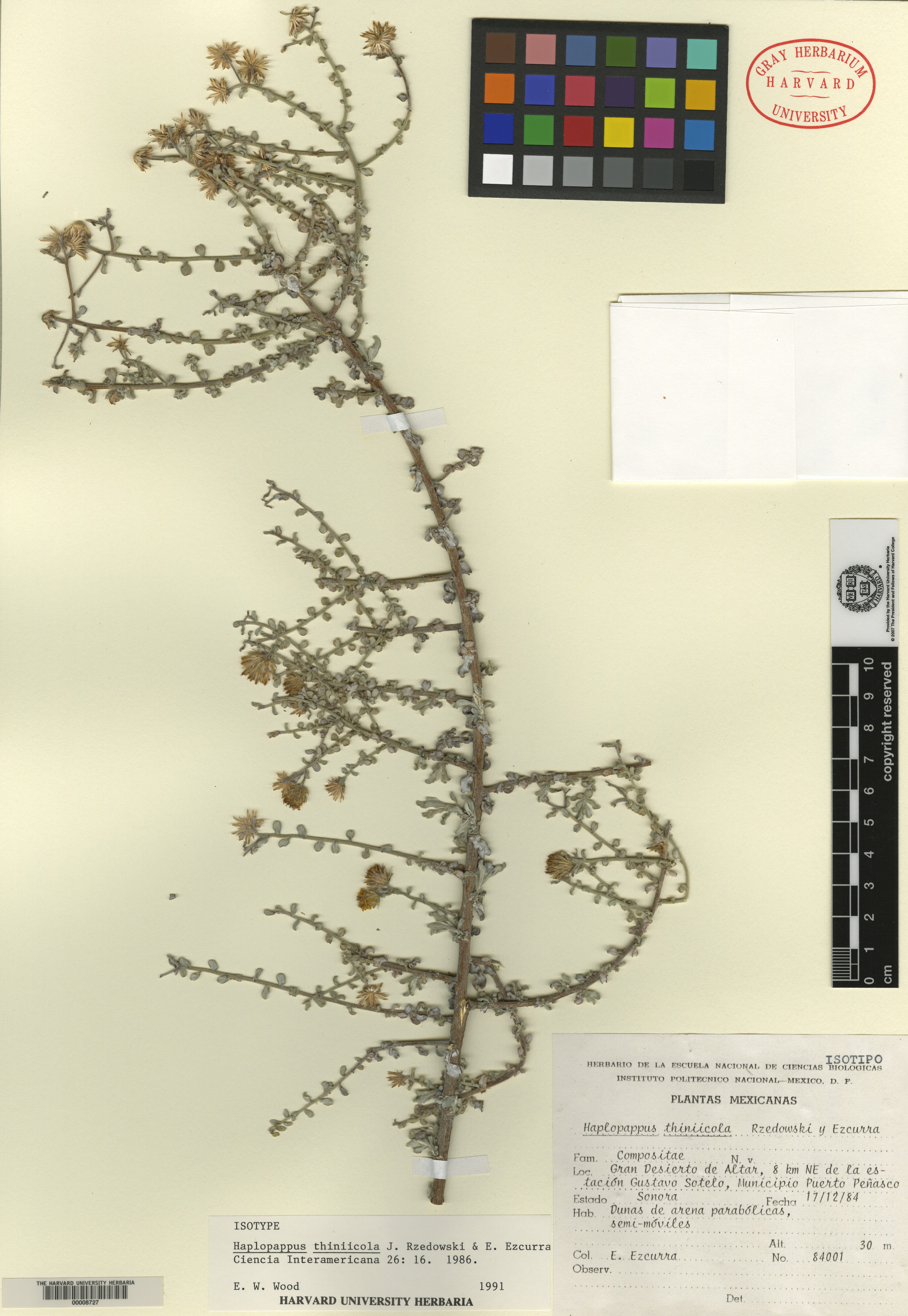 | Isotype of | Haplopappus thiniicola Rzedowski & C. Ezcurra |